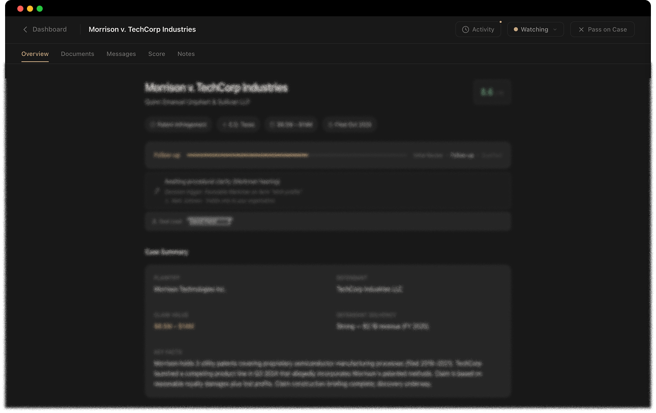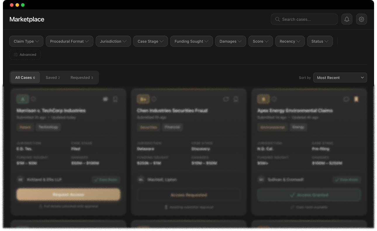 Submit case materials through a standardized intake designed around what funders actually evaluate. No bespoke decks. No reformatting for every conversation.